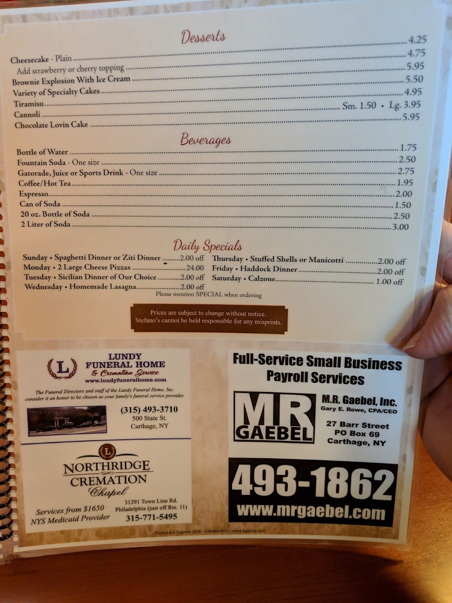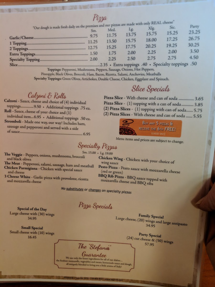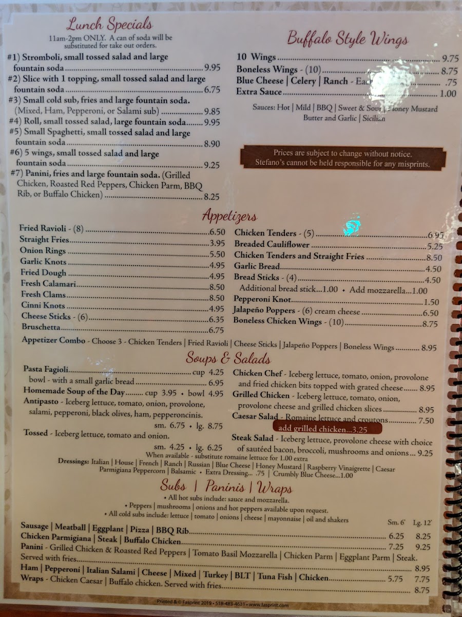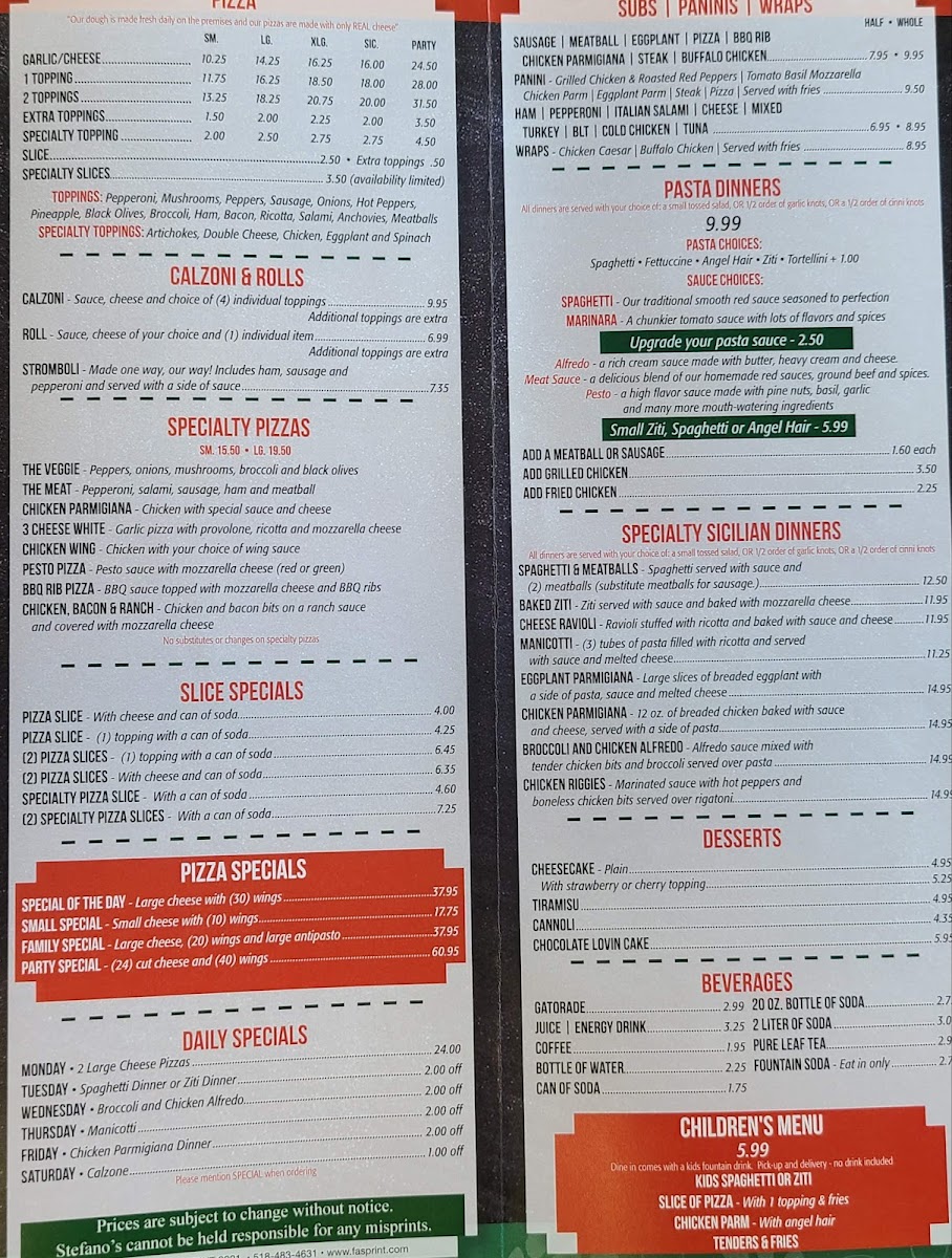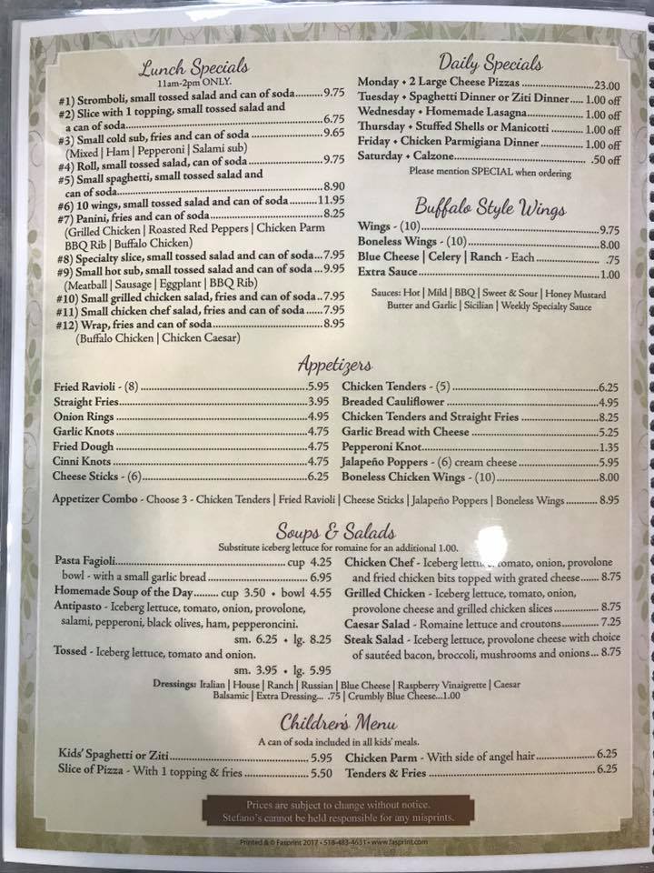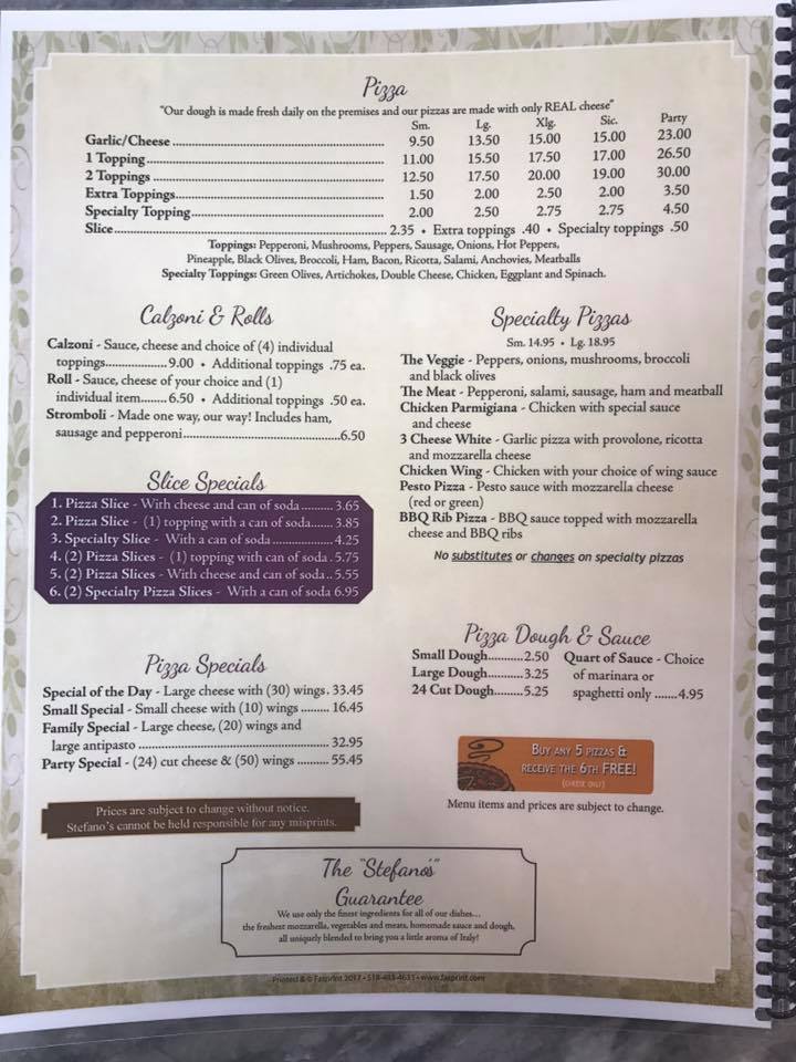 Stefano's Pizzeria- (Fort Drum/Airfield Location) Menu (Update 2025)
